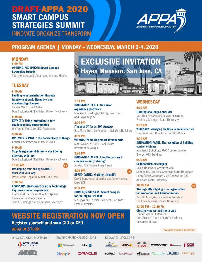 APPA 2020: Smart Campus Strategies Summit APPA > Archive > APPA 2020: Smart Campus Strategies Summit Exclusive Invitation for SFOs, CIOs and CFOs.