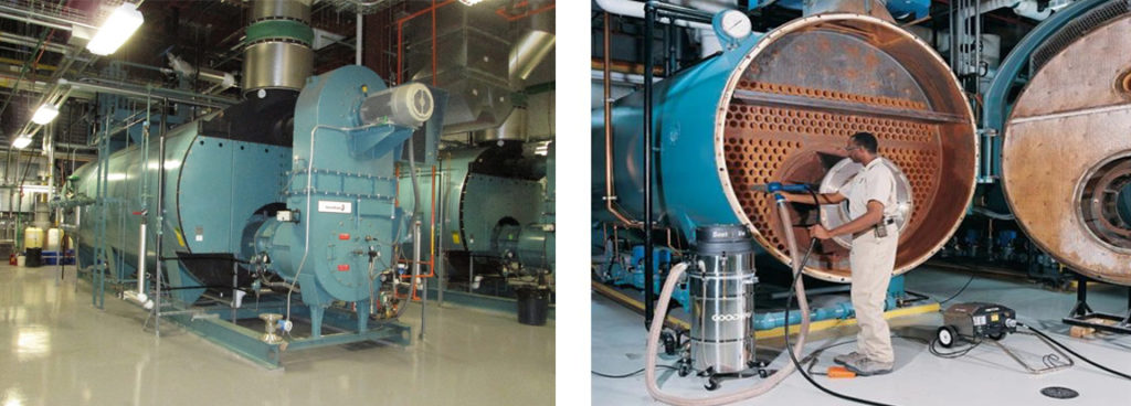 Tubes of a FIRE Tube boiler are being cleaned for efficiency
