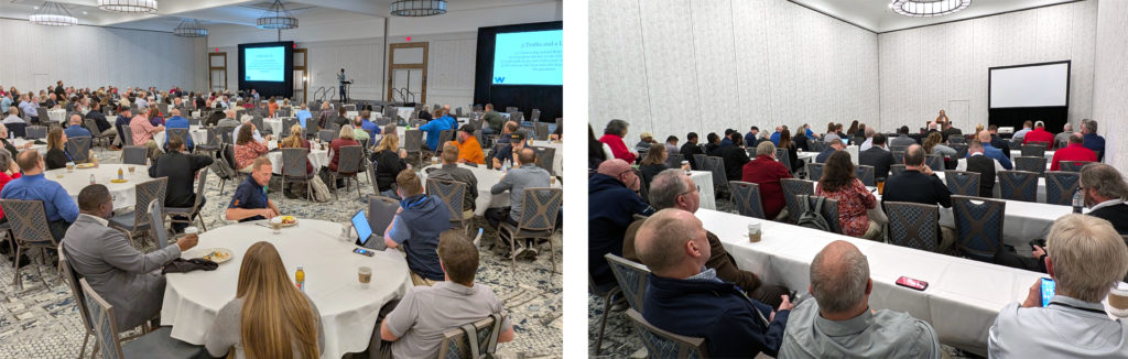 Left: Breakfast and Keynote (Nathan Whitaker; Right: Educational Session (Marissa Pierson from OU)