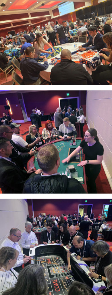 Top: Conference Team Building and Vanessa Behan Charity Event. Center and Bottom: Conference Welcome Reception and Casino Night.