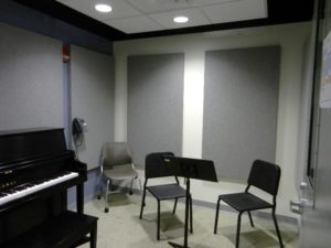 Music practice room in a former automotive technical school shop (Image courtesy of Auxia Design)