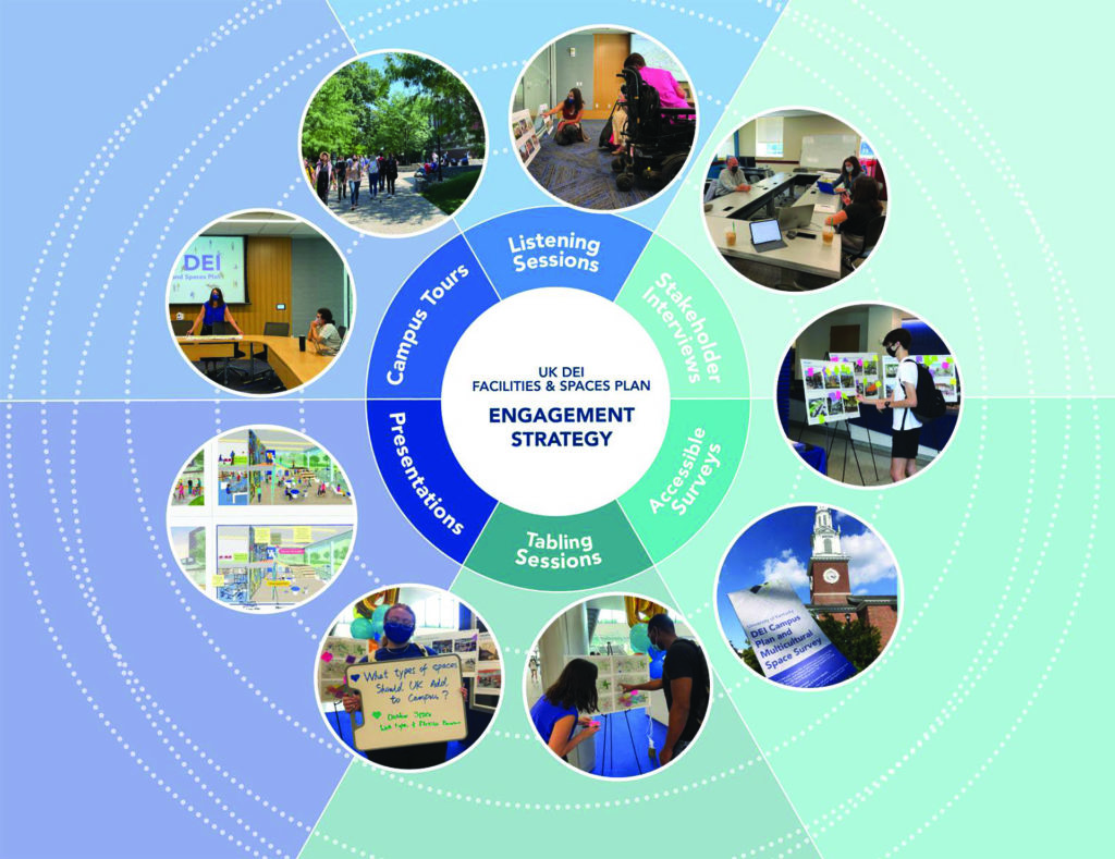 The UK DEI Facilities and Spaces planning process engaged the campus community with a variety of interactions to learn about different experiences and share design ideas.