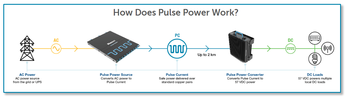Pulse current is set to expand the reach of PoE to more and higher powered devices. Its centralized architecture greatly simplifies power backup and maintenance. Its monitoring capabilities will make it easier to track power usage and identify potential issues before they become major problems. Because pulse power protects against fire and shock hazards, it delivers a safer form of electricity than what’s running in our facilities today.