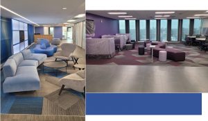 The design for this tenth-floor build-out began in August 2018 and was substantially completed by May 2019. This $3.2 million, 11,300-sq.-ft. project was built above existing occupied classrooms. It serves as a cloud computing hub where technology leaders, industry experts, and students can engage and collaborate, houses the only college credit certificate and associate of science degrees in enterprise cloud computing in the State of Florida, and exposes students and existing IT professionals to industry-leading cloud platforms and industry certifications needed to fill the increasing demand of IT cloud jobs in the workplace. The center also hosts cloud computing accelerated training programs; summer camps; forums; and TED Talks with all required screens, podiums, and speakers; and is set up in a lounge-like atmosphere. Design Firm: Via Design Studio; Contractor: Lee Construction.