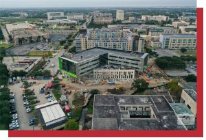 The new 188,600-gsf John M. O’Quinn Law Center, estimated to complete construction by summer 2022, will support the Law Center’s mission as a top-tier law school. The new building will promote community engagement and provide a modern, interdisciplinary legal education in a student-focused environment. As the heart of the building, the law library will include a variety of study spaces with city views and design features that foster a sense of community. Dispersed over three top floors, an abundance of natural light will shine through the student study spaces and faculty offices, framing views of downtown. A series of double-height spaces connected by communicating stairs provide flexible collaboration areas. On the ground floor, public spaces such as an event room, courtroom, and clinics welcome the Houston community. As the design phase took place during the early phases of COVID-19, the team strategized implementing new safety protocols. Specifically, the design implemented a new standard by incorporating ultraviolet germicidal irradiation (UVGI) lighting and MERV-13 filtration in the air handling units that will sanitize the building air in occupied spaces. As the project progressed, supply-chain challenges evolved as the major threat to project delivery and were overcome by constant engagement and strategic material procurement management.