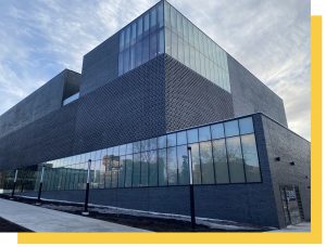 UI’s new Stanley Museum of Art will soon be home to the university’s nearly $500 million art collection, including Jackson Pollock’s Mural, valued at $150 million. The $48 million, 60,4000-sq.-ft. building facility reached substantial completion on January 31, 2022, and replaces the former building damaged in the 2008 flood. The new building is designed to accommodate flooding of the nearby Iowa River with a first floor elevated seven feet above grade and underground parking below. The building features a secured and tempered truck loading bay, a 400-sq.-ft., three-story lightwell, two third-floor terraces, custom handmade bricks, triple-pane glass, and perforated metal panels, as well as galleries, teaching studios, student spaces, administrative offices, and art storage. Construction teams 3D-modeled building systems to facilitate installation and allow for maintenance access to the building. The university’s 17,000-piece art collection has been on traveling display for the last 14 years and will return to the university permanently in August 2022 when the building publicly opens. UI looks forward to bringing Pollock’s iconic piece back to campus and to once again having a home for all art at the university.