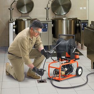 GENERAL PIPE CLEANERS introduces the compact yet powerful JM-1450 Electric Water Jet. Using high- pressure water to clear drain lines clogged with grease, sand, sludge, and ice, the JM-1450 is powered by a 1-1/2 hp (13-amp) sealed motor with a ground-fault circuit interrupter (GFCI) that drives a 1,500-psi, 1.7-gpm triplex pump. On-demand Vibra-pulse technology helps propel hoses down long runs and around tight bends—even in small lines. General’s unique feature ensures a constant flow rate whether Vibra-pulse is on or off. Wheel the trim JM-1450 right to your trouble spots! The heavy-duty frame rides on two 8-in. semi-pneumatic tires. And the telescoping handle and removable hose reel make maneuvering easy. The JM-1450 has an overall height of 34 in., and when the easily detachable hose reel is removed, the height drops to just 14-1/2 in. Safety features include a thermal relief valve to protect the pump from heat damage, as well as a backflow check valve and inlet filter. An optional spray wand is also available. For more information, contact the Drain Brains at www.drainbrain.com/jets.