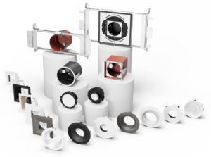 DMF LIGHTING’s DRD + M Series LED Modular Downlighting System features unique 4-inch housings – offered in round and square apertures – that install in nearly any building ceiling types including wood, concrete, and sloped ceilings. With over 50 interchangeable trim choices, a single housing can accommodate 98% of downlighting applications. The series features tool-less, field-changeable modules/light engines (downlight and adjustable), optics (from 15º to 90º+) and trims, fire-rated housings, precise lighting control with delivered lumens from 750 to 1500, and a lifetime of 50,000 hours. Offered in five color temperatures, allowing dimming from 3000K to 1800K, all while maintaining a consistent 93+ CRI. Visit www.dmflighting.com.