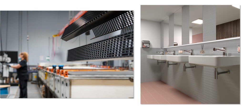 In the long term, the circular economy is the only way to deal with limited resources and to reduce any carbon footprint. The circular economy is seen as an alternative to the traditional linear economy, in which products are made, used, and then discarded as waste. This model has the potential to create new economic opportunities, reduce environmental impacts, and enhance the resilience of communities and ecosystems. Everything from the clay used in tiles to the brass, stainless steel, and various woods used are being recycled—as much as 91.2% or more in certain circumstances. True “closedloop” factories also help with liquid waste by making sure that any waste is reused. For some manufacturers, switching to water-based coatings and recycled materials in product and packaging and focusing on local suppliers, climate-neutral production, and climate-neutral products illustrate a high sustainability standard. Whether facility managers are managing universities, hospitals, or commercial office spaces, they are on the front line when recommending and sourcing products that are produced more sustainably.