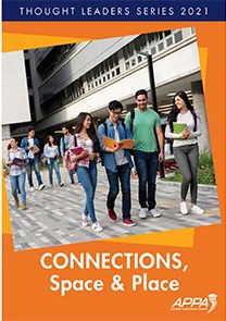 The 2021 Thought Leaders report, Connections, Space and Place, focuses on the “sense of place,” defined by one expert as “the feelings evoked among people as a result of the experiences and memories they associate with a place and the symbolism they attach to that place.” Meaningful places can come to represent an entire institution, including its history, its values, and its legacy. A strong sense of place can arise naturally, but it can also be consciously, carefully cultivated. This is possible for any institution, no matter its age or classification. Historic campuses with well-established places and traditions may find this process easier, but even new campuses and recently established institutions can foster a sense of place. Colleges and universities should look for the places where the community naturally gathers—a quad, a fountain, a lounge, a stairway—and take steps to make that place welcoming and accessible.