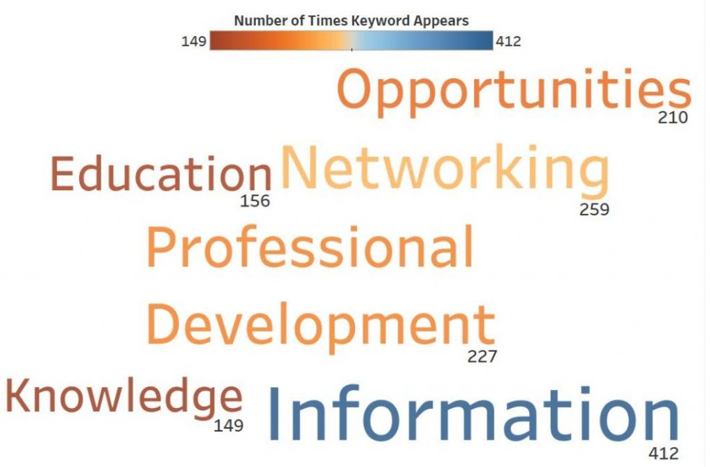 Lastly was the word opportunity. The biggest takeaways around the word opportunity were: “APPA presents networking opportunities at the local and international level for volunteer leadership; APPA provides opportunities for training and benchmarking; APPA provides opportunities for sharing information and accessing other facilities management professionals through networking.”